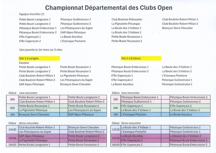 Infos championnats départementaux